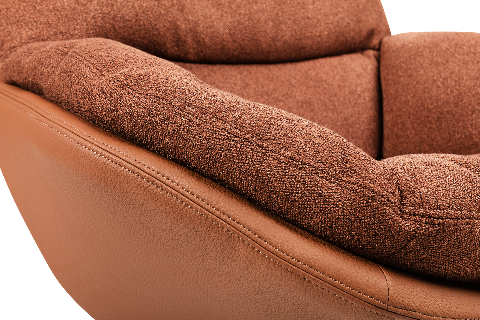 Ontdek de ontspannen elegantie van draaifauteuil MARE, waar nonchalant comfort en verfijnd design samenkomen. MARE is ontworpen voor wie houdt van comfort en stoer design. Dankzij haar zachte vormen en draaibare onderstel past deze fauteuil moeiteloos in zowel moderne als warme, eigentijdse interieurs.